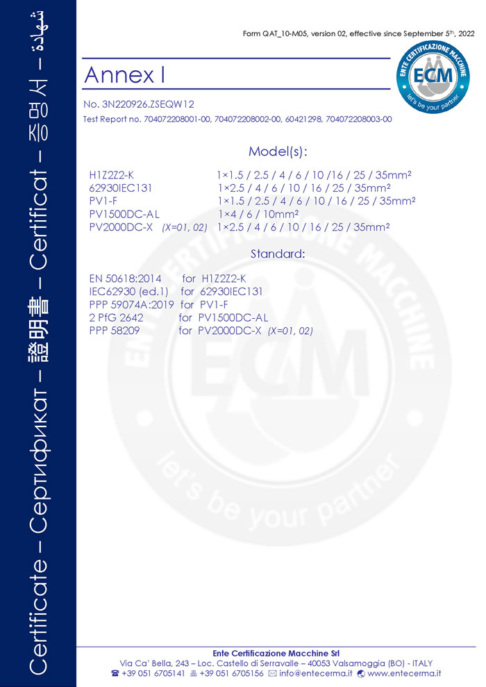 IEC 62930, EN 50618, TÜV 2 PFG, UL 4703 चे पूर्ण पालन